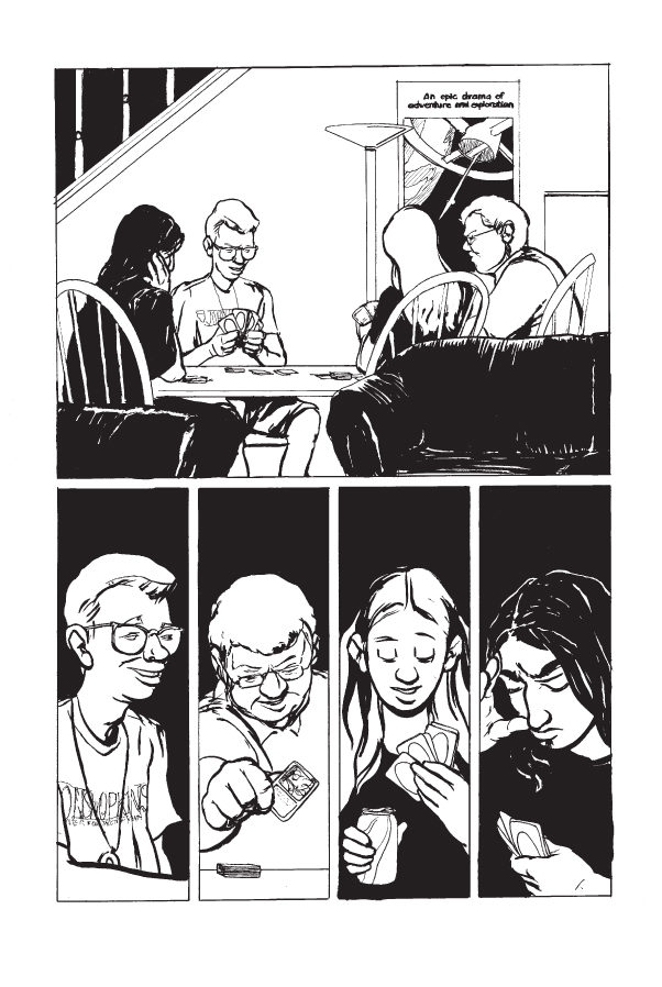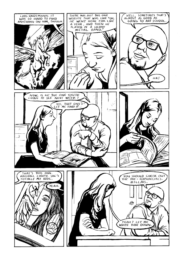 The Age of Elves is a comic about the souls of geeks. It follows the story of Sarah Loeb, a teenager with aspirations of being a fantasy illustrator. Issue one introduces us to Sarah and her friends on a typical day in the summer of 2000. Pizza is consumed, RPG adventures are had, and there's a particularly heated debate about what's really in that suitcase in Pulp Fiction.