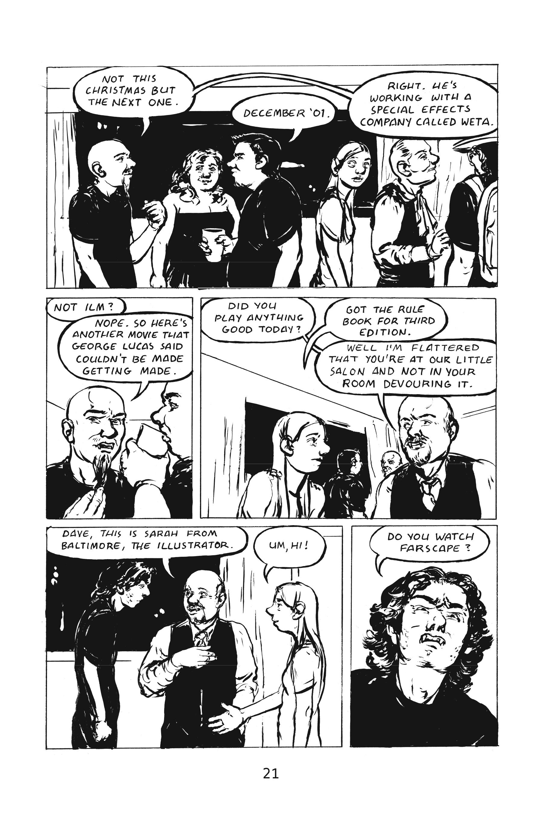 Sarah has found two new friends at Gen Con: Alan and Catherine, an older couple who are avid players of Vampire: the Masquerade. Though she is too self-conscious to join their LARP, she accepts an invitation to the after-party. Leaving her hometown friends back at the hotel room, Sarah ventures to this late-night gathering and gets a glimpse of at what nerds look like, post-high school.