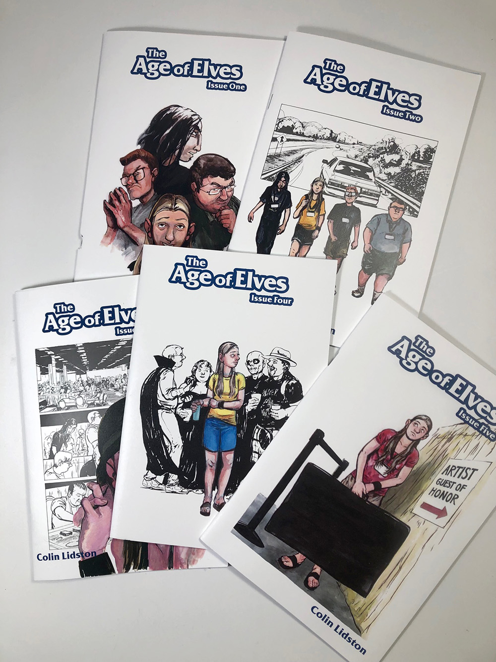 All five issues of The Age of Elves Issue by Colin Lidston 6" x 9" black and white with a full-color covers